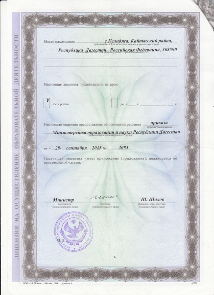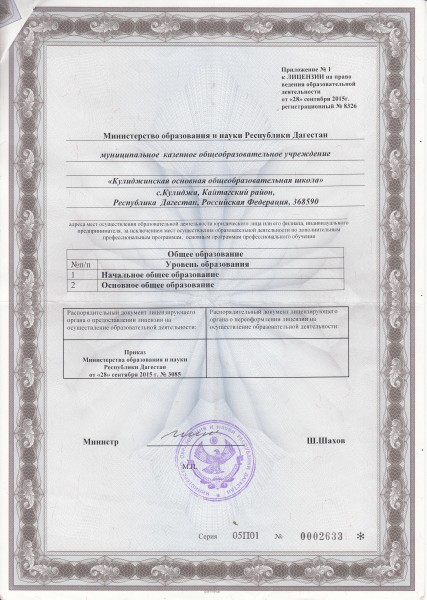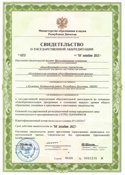 | Адрес местонахождения образовательной организации* | 368593, Республика Дагестан, Кайтагский район, село Кулиджа, |